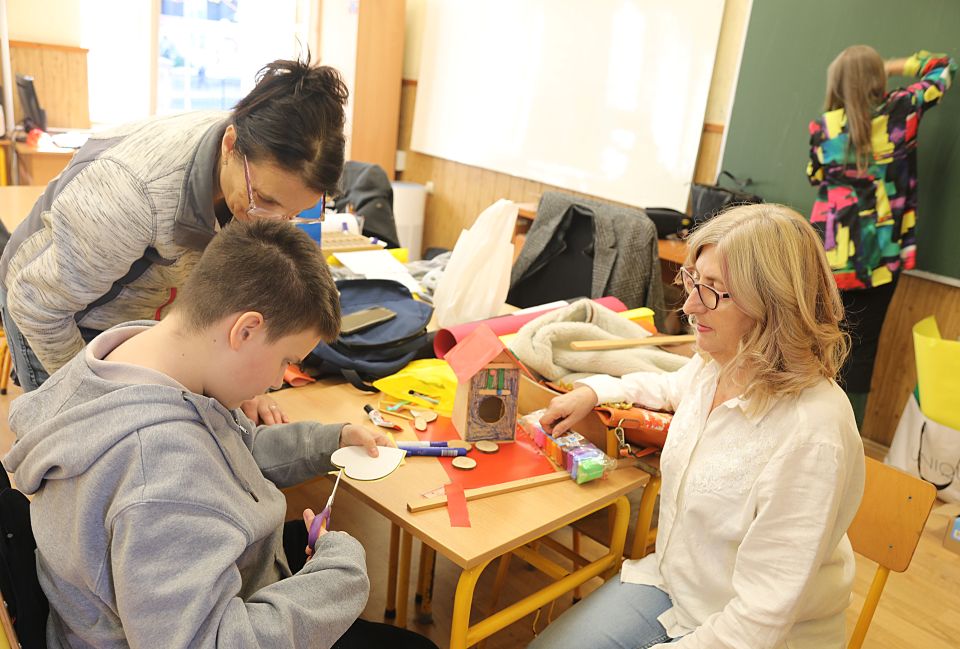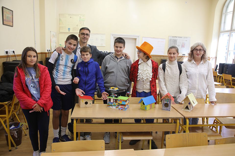 У кабинету ТиТ и Информатике ученици су применили стечене вештине и креативност у задацима везаним за декорисање кућица за птице техником лепљења украсних фолија као и за прављења модела кућице од лего систем коцкица. У склопу радионице „Број“ израђивани су 3D бројеви од различитих врста материјала којима су кућице нумерисане.
