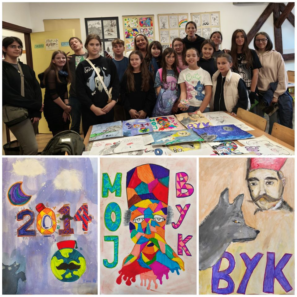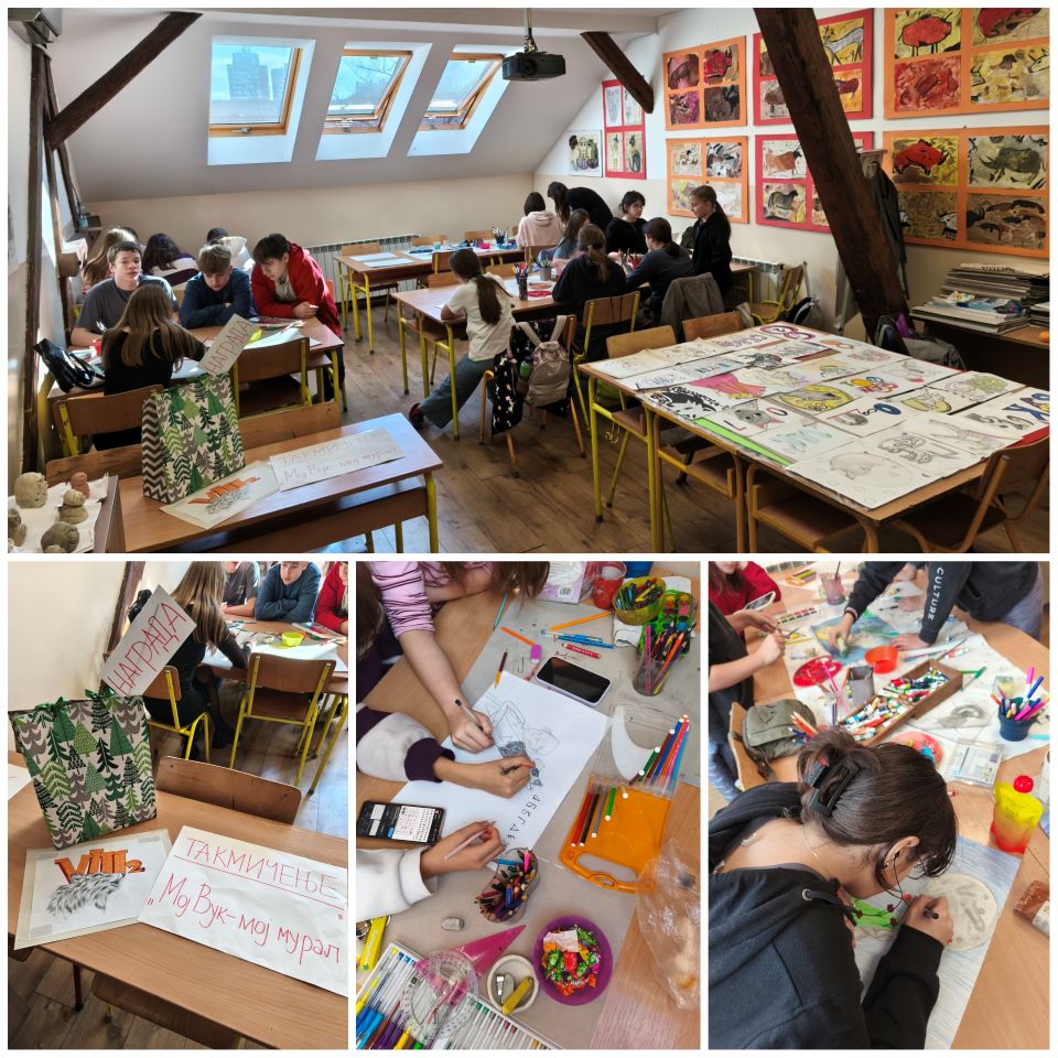 „Мој Вук – мој мурал“ активност је талентованих цртача, старијих ученика наше школе, који су радили у осам група рад на ову тему од 10 до 13 часова у кабинету ликовне културе.