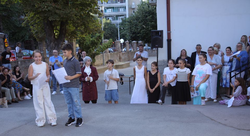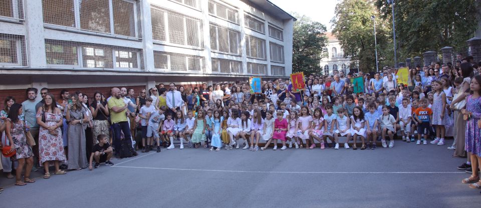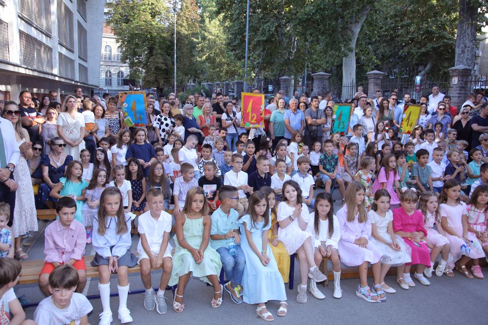 Свечани пријем ученика првог разреда организован је у школском дворишту у понедељак, 01.9.2025.г. у 17.часова. Ученици четвртог и петог разреда заједно са својим учитељицама потрудили су се да пригодним програмом овековече овај тренутак. Ученици 4/1 су извели две композиције – „Сунцокрет“ и „За милион година“. У програму су учествовали и ученици петог разреда: Миа Лазаревић и Лена Милидраговић су наше најмлађе ученике одушевиле својим балетским умећем, Маша Величковић – рецитаторским и Оскар Велини изузетним рецитаторским и сценским наступом. Ученица Касја Латиновић рецитовала је своју ауторску песму „Школо, школо, зашто бих те вол*о која је проглашена за најуспешније песничко остварење на сусртима деце и младих у организацији Пријатељи деце Стари град. Ученик Огњен Димић приредби је дао посебан тон извођењем композиције на флаути. Програм су успешно водили ученици Емилија Каменица и Митар Бошков.